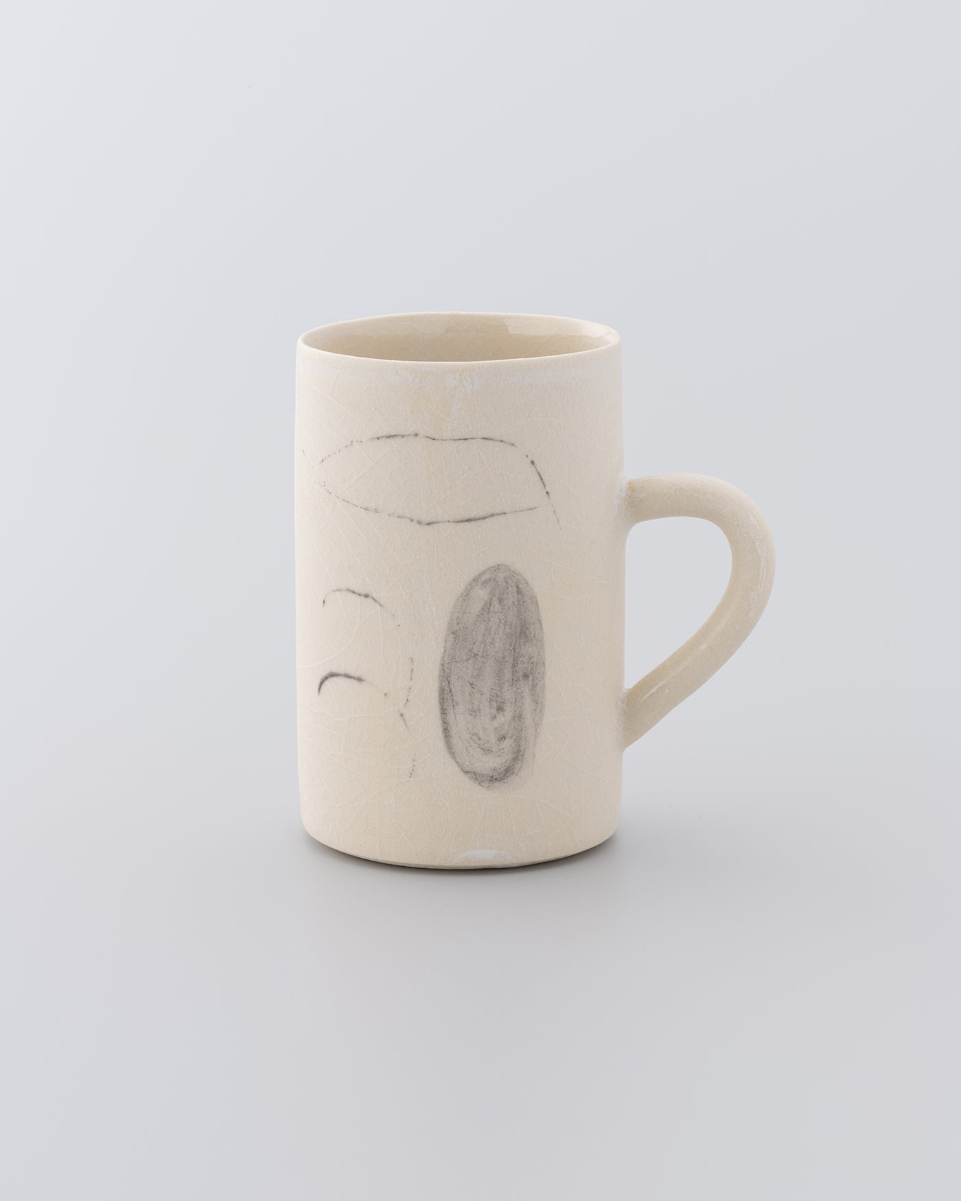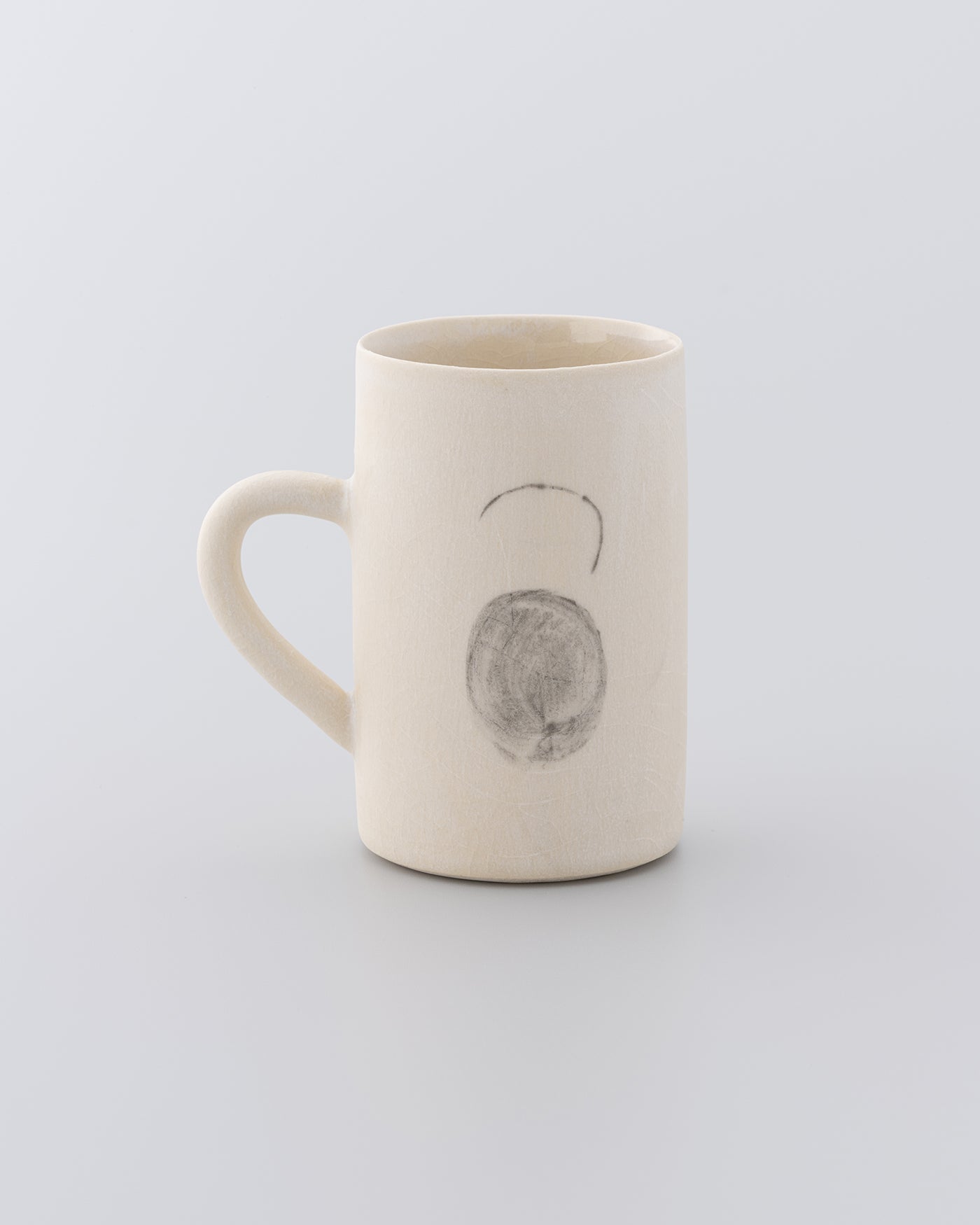 陶芸家・佐藤朱理のマグカップ。土の質感と独自の楽焼釉による景色、たっぷりの容量のカップです。